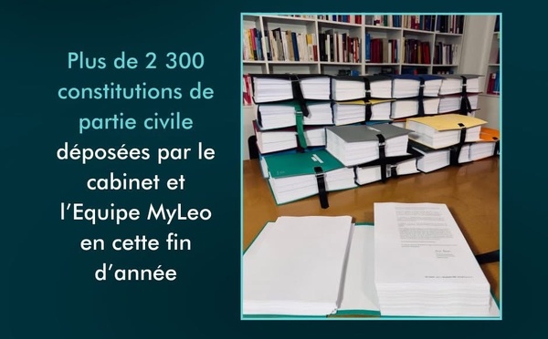 Toute l’équipe du cabinet CLE AVOCATS et de la Plateforme MyLeo  vous remercie sincèrement pour la confiance que vous nous accordez et pour votre engagement dans les actions collectives...